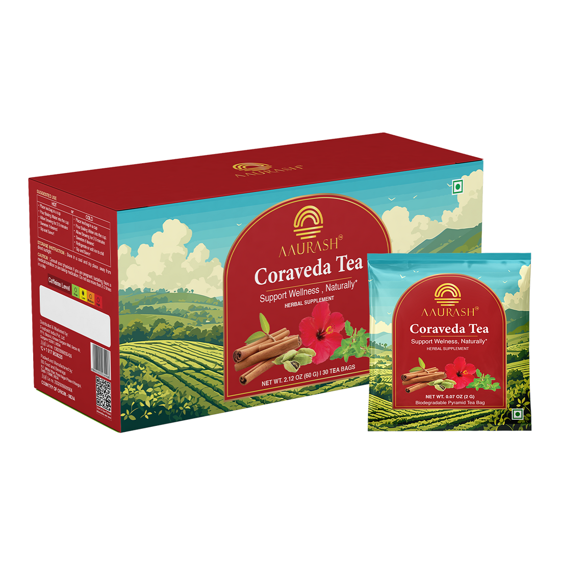 Experience the soothing benefits of Aaurash Coraveda Tea, a thoughtfully crafted herbal infusion designed to...