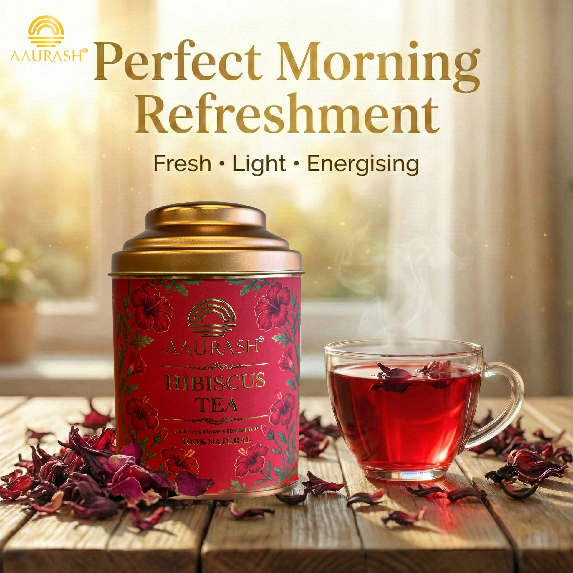 Aaurash Hibiscus Tea | Antioxidant & Caffeine-Free | Sun dried Gudhal for glowing skin | Pure & Natural