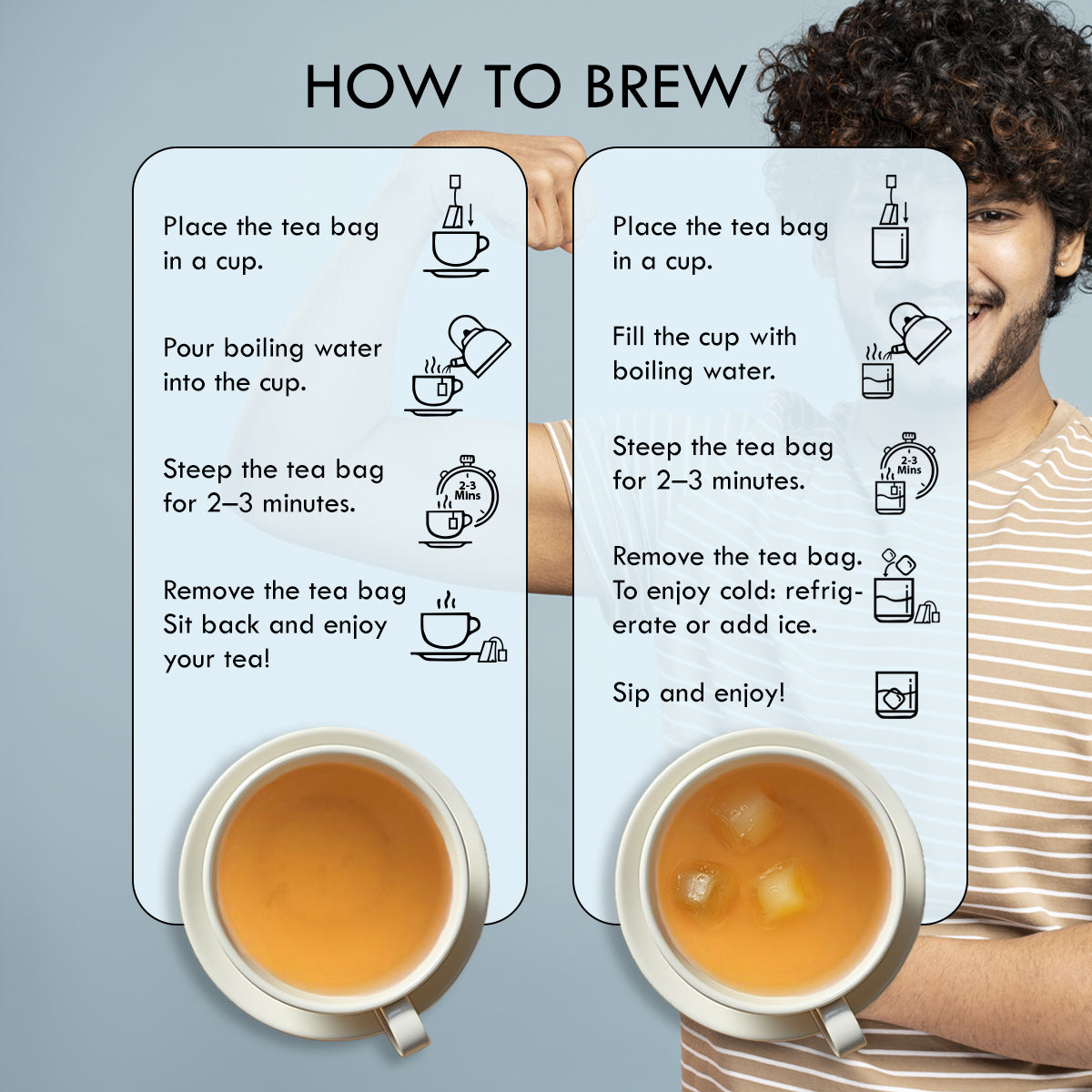 · Place one tea bag in about 200 ml of hot water (just below boiling).